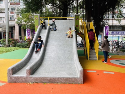 三重區公所陳奇正區長表示,慈化公園位處三重碧華國小旁,為讓市民有更好的休憩體驗,公所從110年至111年分二階段進行公園全面大改造,第一階段在110年完成「共融遊戲場」,第二階段則是111年9月進行「磨石子滑梯」與「彩色地墊」,並加大溜滑面改成1大1小,並增加攀爬網與彩繪。